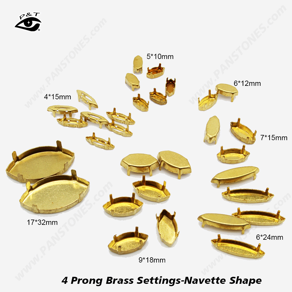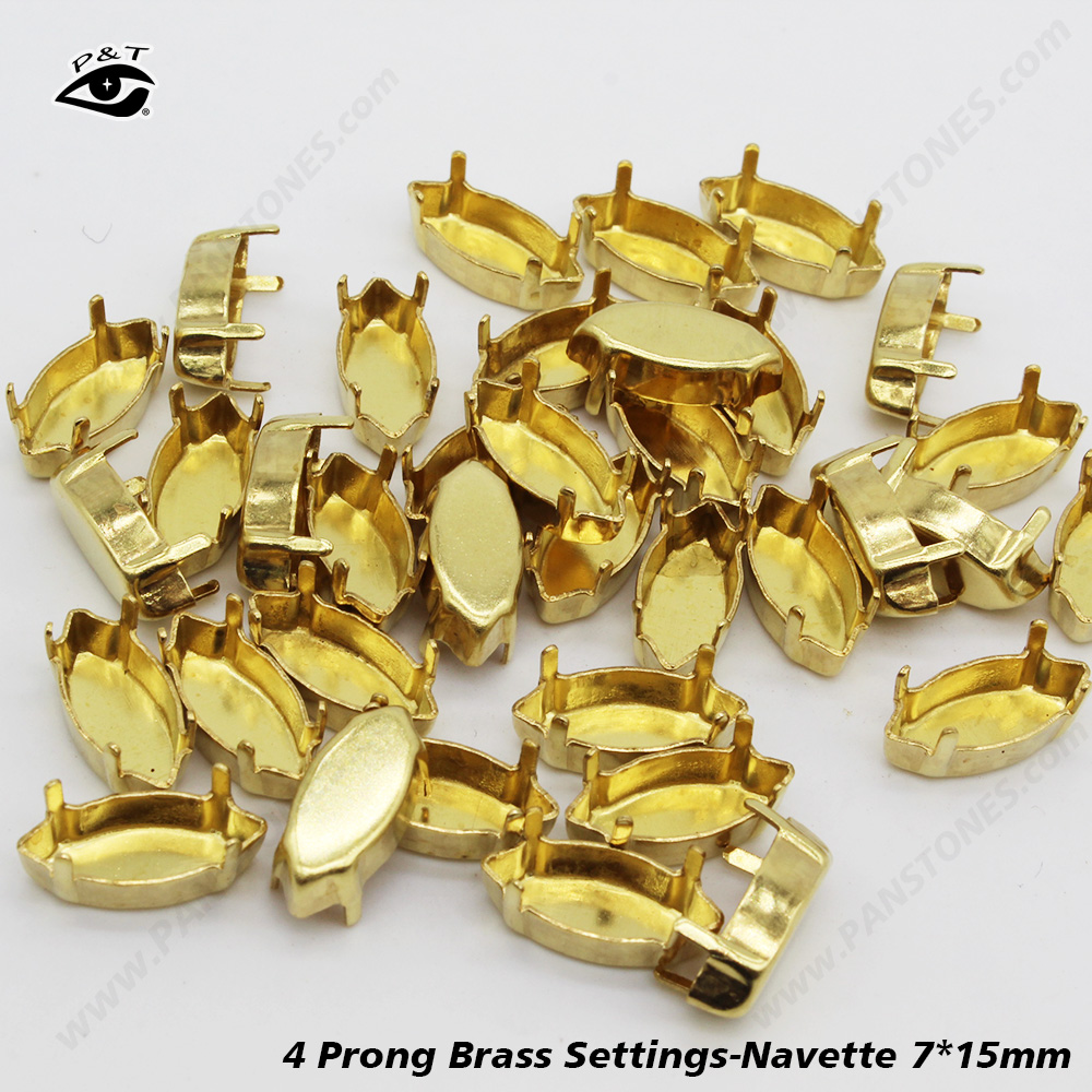 Navette Empty Copper Claws For Rhinestones,4 Prongs Metal Brass Settings,Metal Claw 15x7 Navette Setting For Sewing Stones,Jewelery Making Sew On Stone Setting