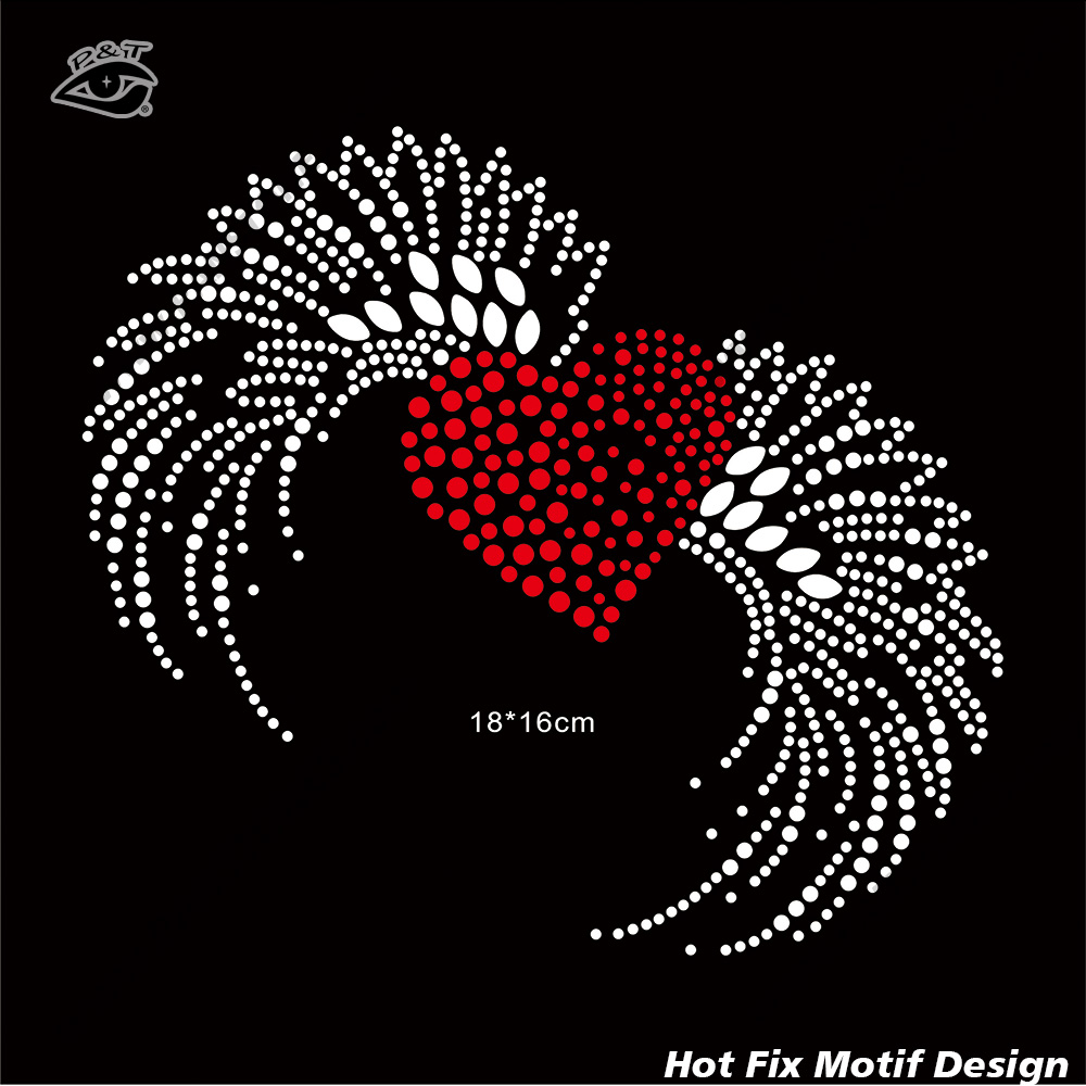 Wings Heart Transfers Iron on Rhinestone Heat Transfers Angle Wings Crystal Decor Clear Bling DIY Patch Clothing Repair Hot Fix Applique for T-Shirts Vest Shoes Hat Jacket