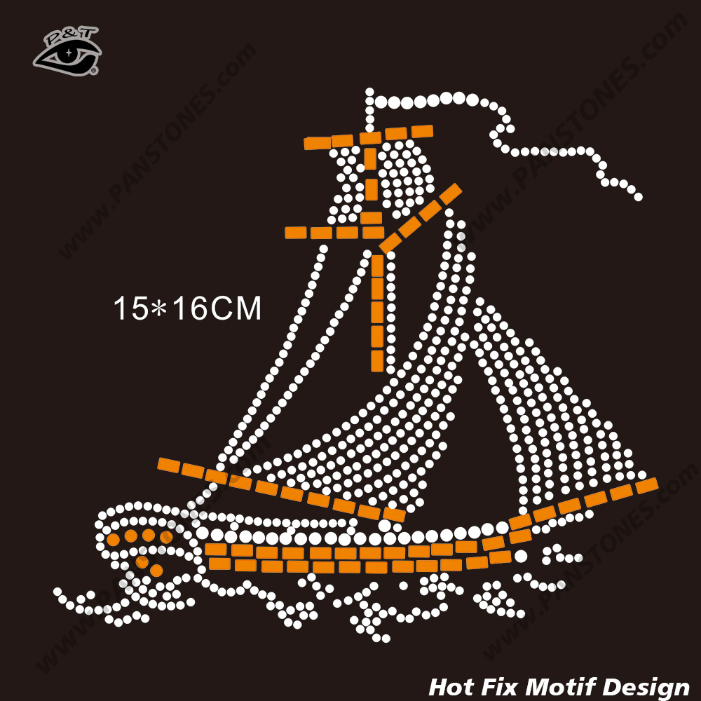 Iron-On Rhinestones Heat Transfers Ship Design For T-Shirts Vest Shoes Hat Jacket,Boat Design Hot Fix Rhinestone Motifs DIY Patch Clothing Repair Hot Fix Applique