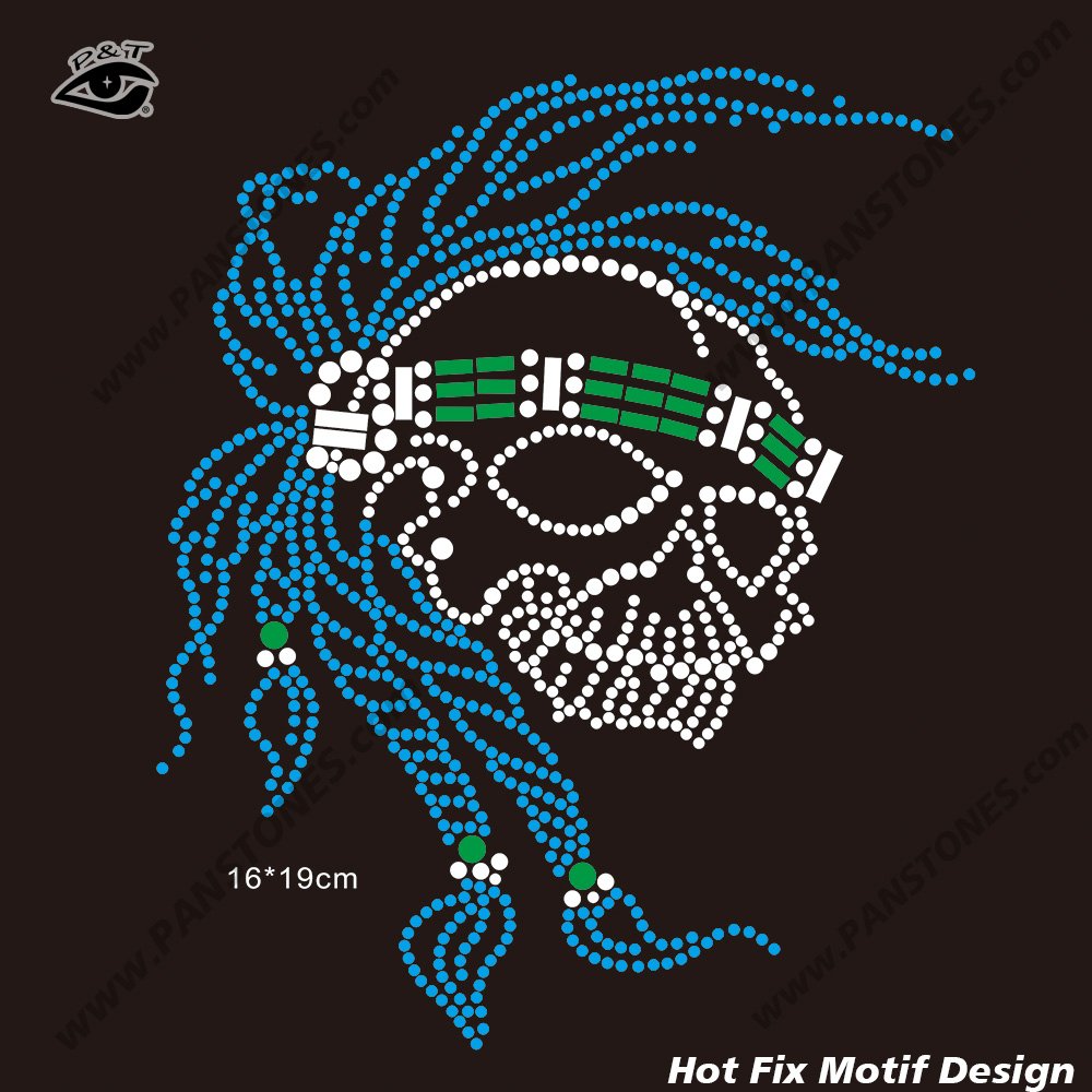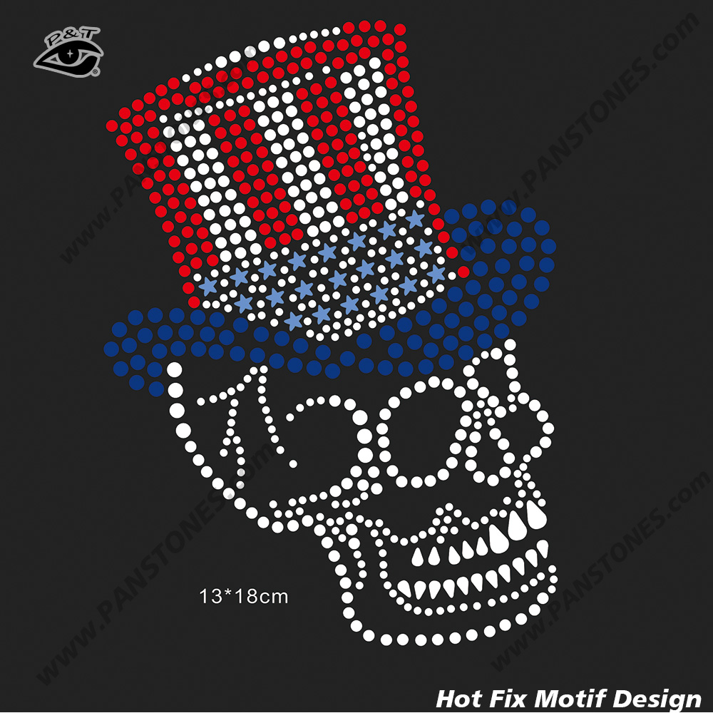 Skull With Hat Design Hot Fix Rhinestone Motifs,Skull Design Transfers Iron on Decals Hotfix Decal Transfer Bling Crystals Transfers Skull Rhinestones For Garments Jackets