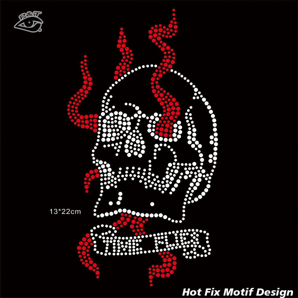Hot Fix Rhinestone Motifs Skull On Fire Design Transfers Iron on Decals Hotfix Decal Transfer Bling Crystals Heat Transfers Skull Rhinestones For Garments Jackets