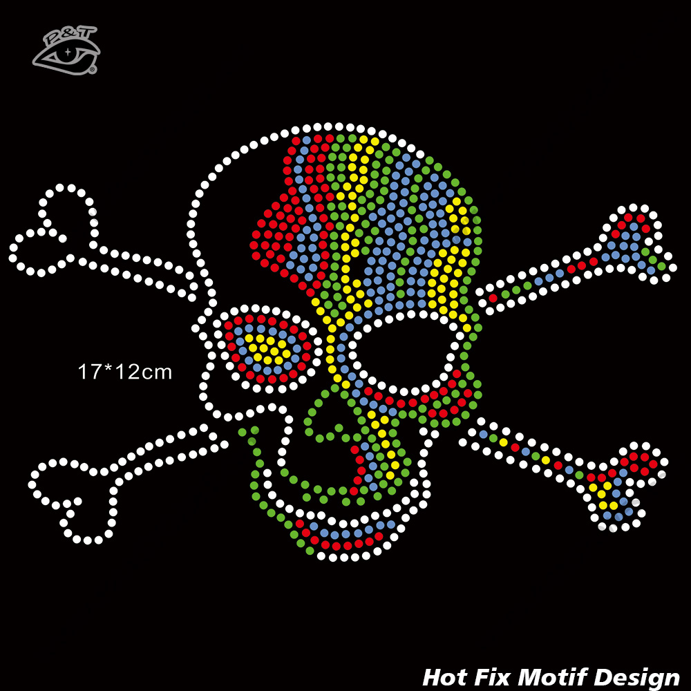 Mixed Colored Rhinestone Skull Design Rhinestone Transfers For T-shirts,Coats,Jackets,Hot Fix Rhinestone Motifs Skull Pattern For Clothing,Iron on Heat Transfers,DIY Transfer,Rhinestones Decal,
