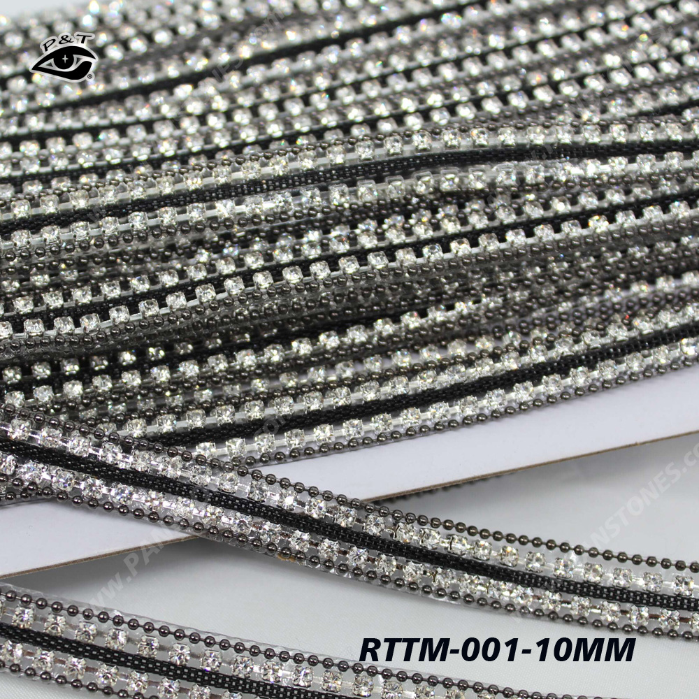 Hot Fix Rhinestone Ribbon 10MM Width Rhinestone Chain,Crystal Silver Chain Ribbon For Garments,Bags Accessories,Iron On Crystal Chain,Heat Transfer Ribbons