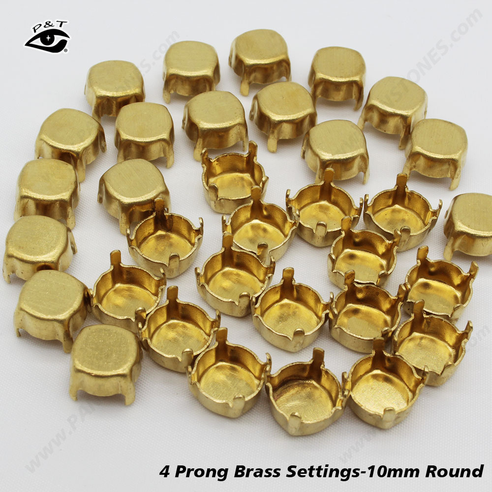 10MM Empty Prong Setting,4 Claws Metal Setting For Flat Back Crystals,Back Closed Copper Metal Setting,Round Setting For Jewelry,Four-Prong Diamond Settings