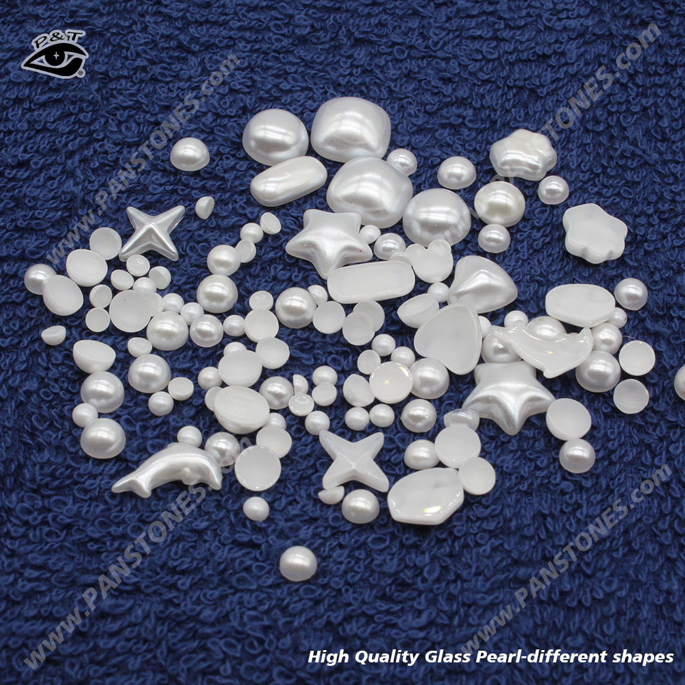 White Mix Sizes Flat Back Glass Pearl Cabochons Flat Back Pearls Different Shapes In Round,Star,Drop,Oval,Cross Square For Nail Art Decorations Jewelry Making Accessories