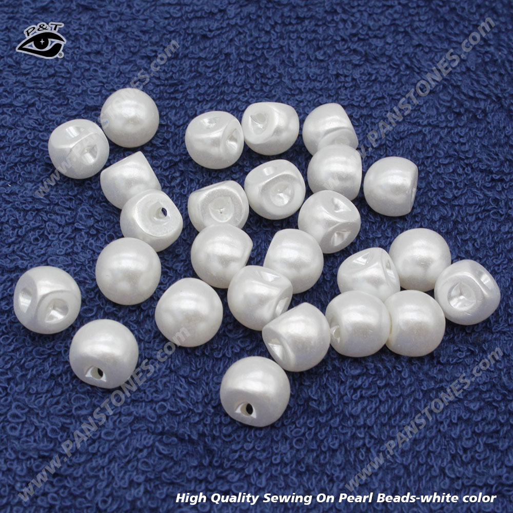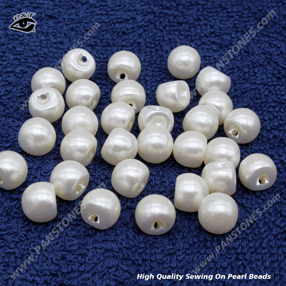 Sew On Pearl Beads With Holes,High Quality 6MM White Pearl Bead Buttons Round Pearl Cream Pearl Cabochon Faux Round Pearl Ivory Pearl Cab Accessories Embellishment Beads