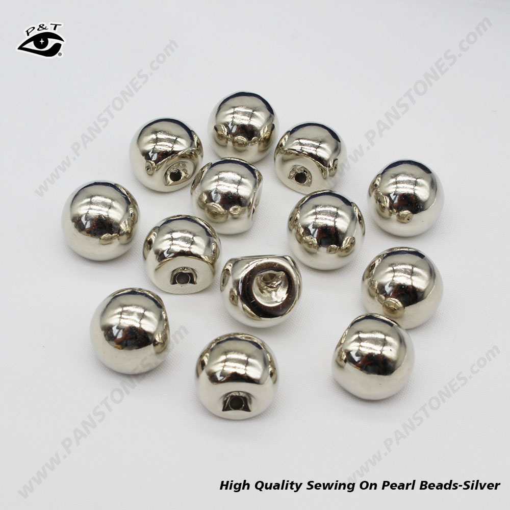 6MM Sew On Pearl Beads,Silver Round Beads,Drilled Silver Round Beads For Garment Accessories Embellishment Beads