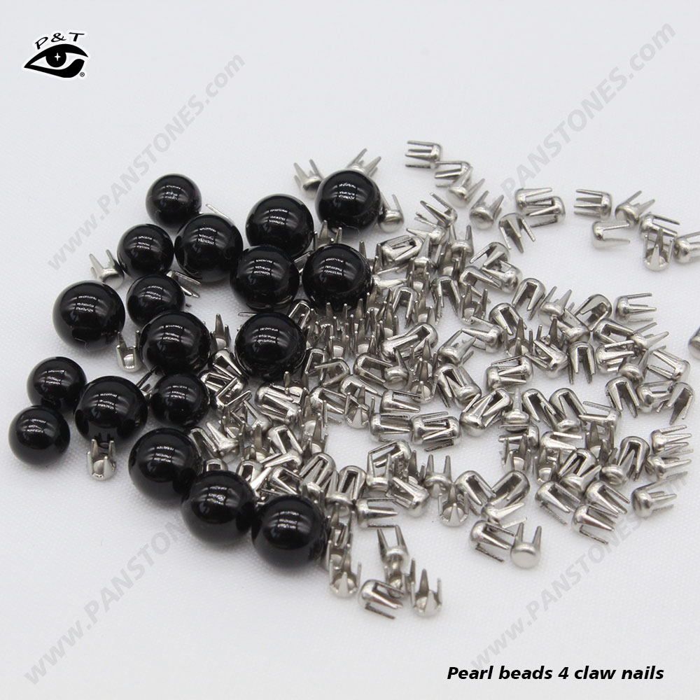 Black Pearl Rivet Studs 4mm,6mm 8mm 10mm 12mm White Pearl Beads for Crafts Jeans Bags Shoes Clothes Decoration Round Pearl Rivet Studs With 4 Claw Nails