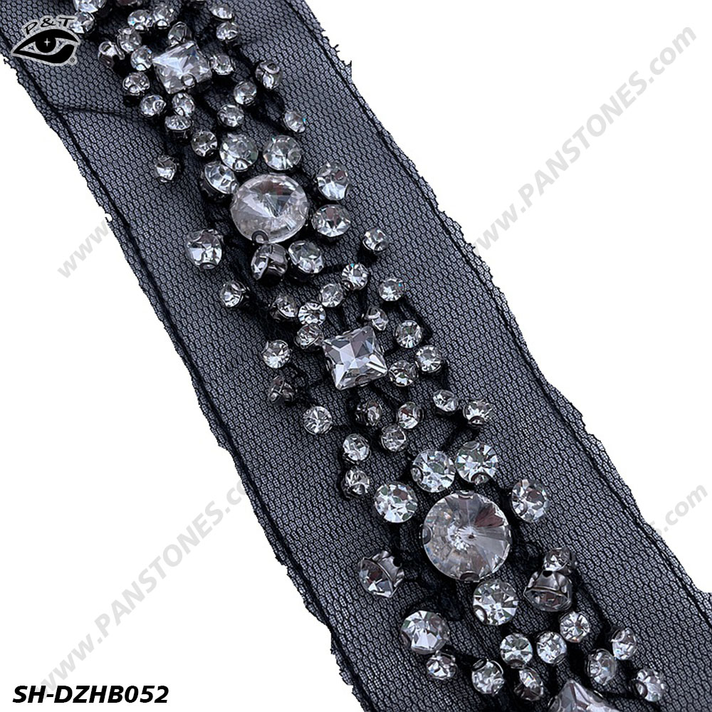 Material: mesh backing with glass rhinestone backing